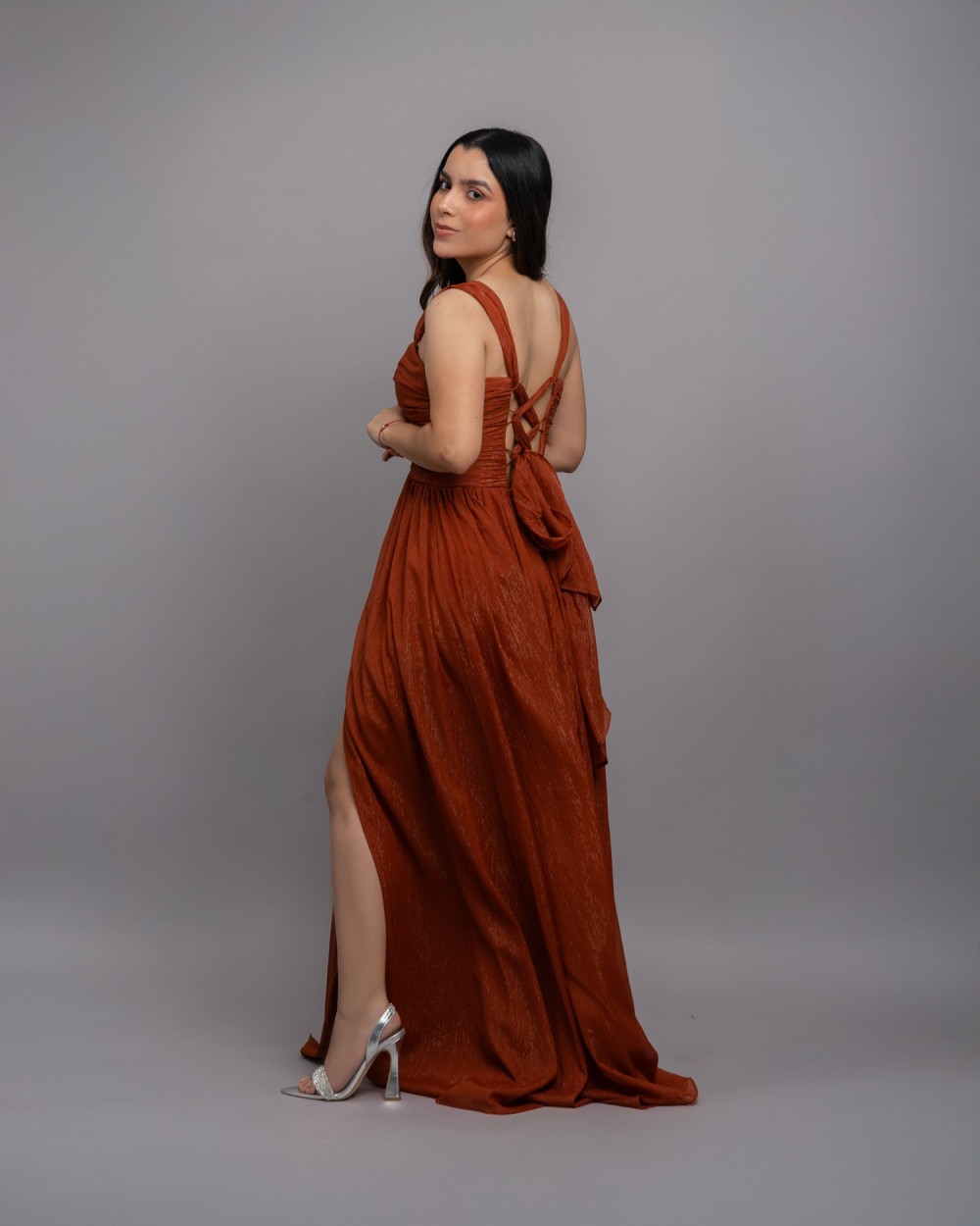 Vestido largo con tirantes - escote de pecho de corazón
